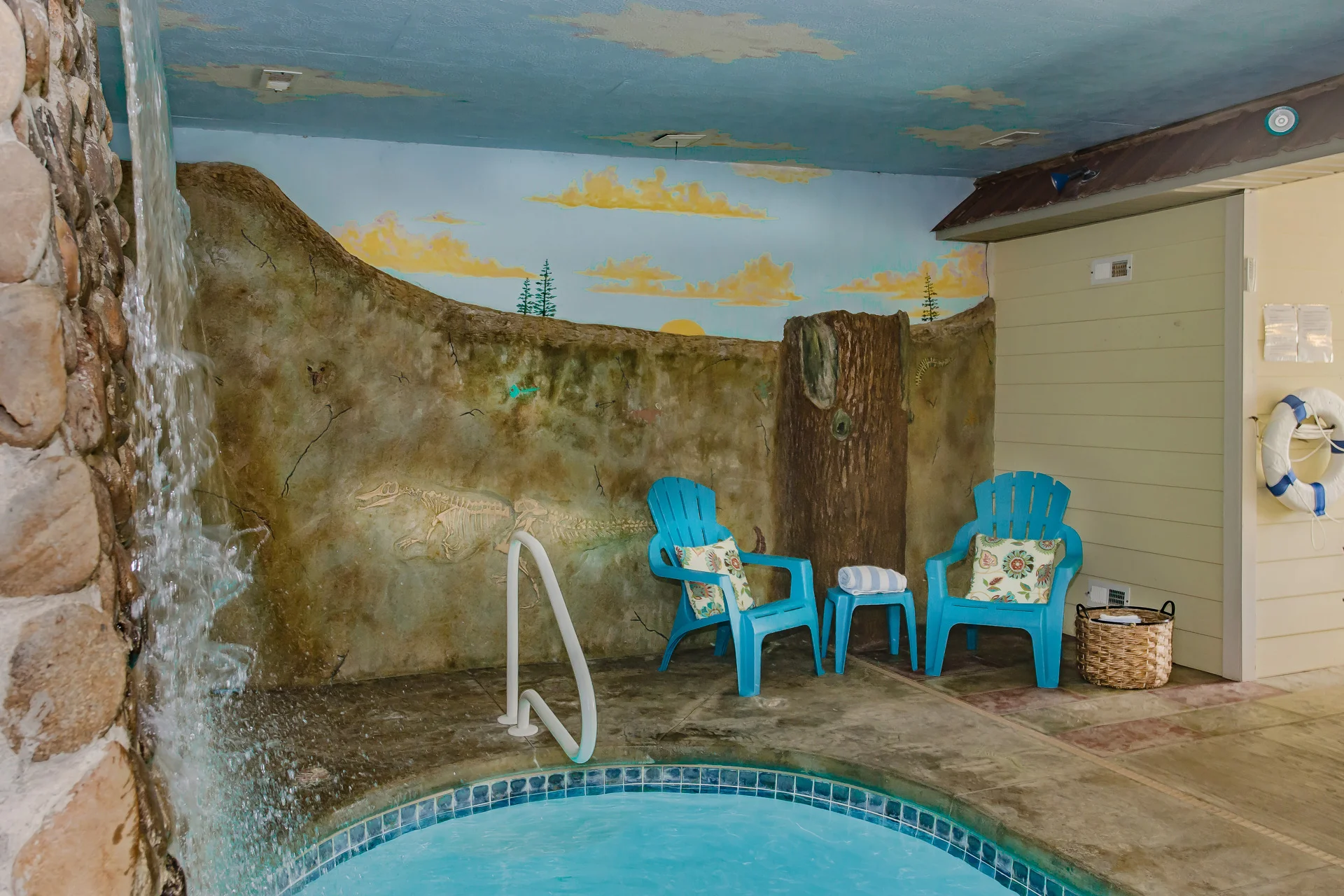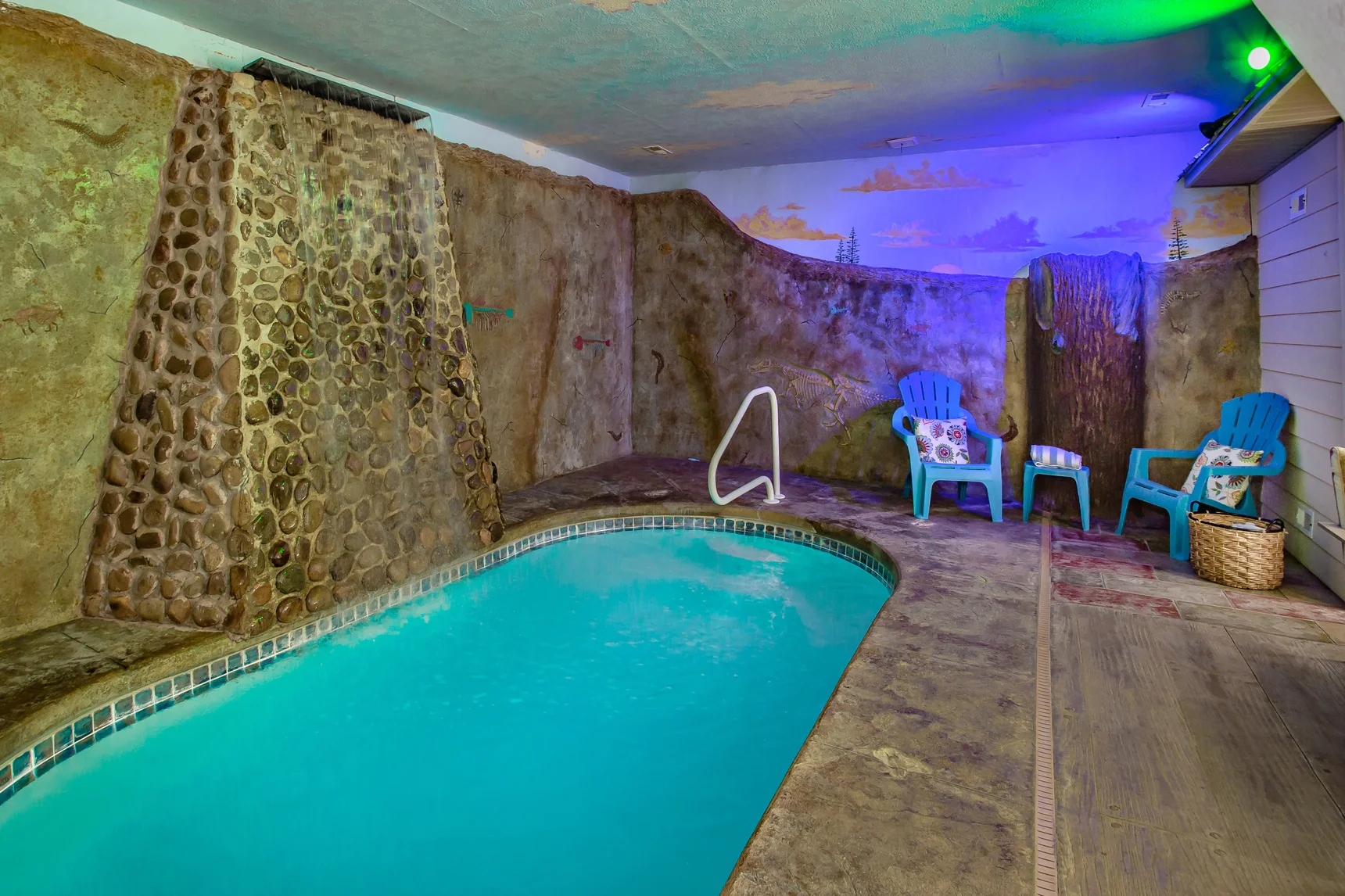 Holy Smokies Pool Palace (Formerly Adorable Teddy Bear Pool Palace) Cabin features a fabulous indoor heated swimming pool with a gorgeous waterfall and a sauna off the pool room for your ultimate experience in total relaxation.