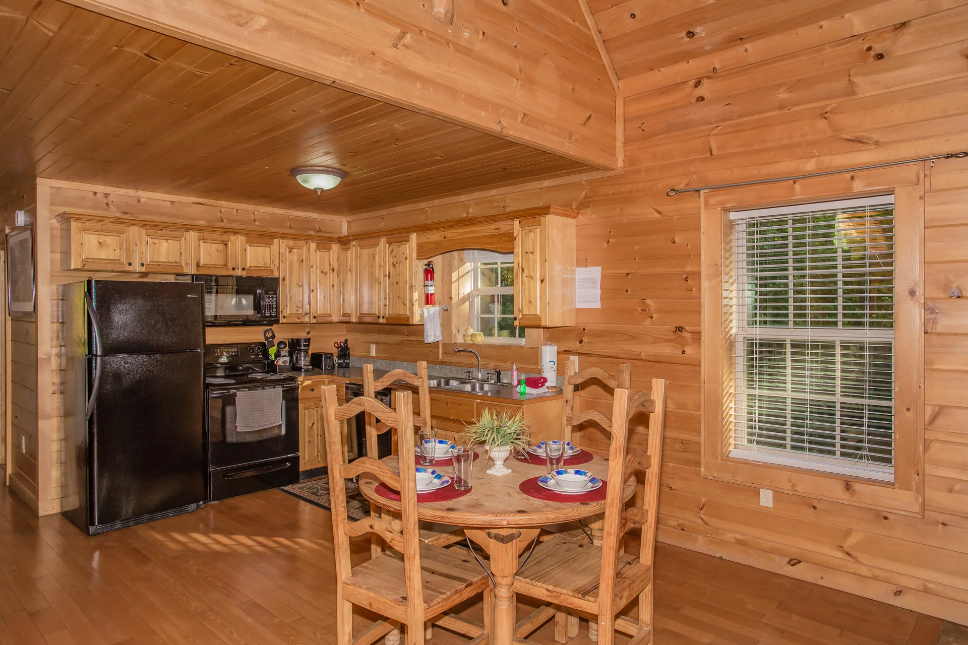 This place is amazing! We have a 2 year old and 10 year old both loved this place! The pool is the perfect size and temperature. The hot tub was big enough for all of us to relax and watch the world go by. The cabin has plenty of pots and pans. We had an amazing time relaxing and reconnecting as a family. The cabin was clean and very inviting. We will definitely be staying here in the future.